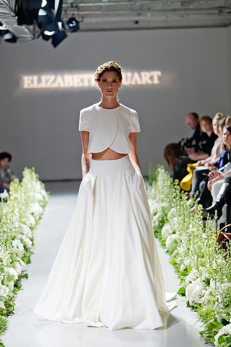 Elisabeth Stuart también incluía en su colección de otoño este dos piezas con un top abierto y falda de vuelo con cintura ancha.